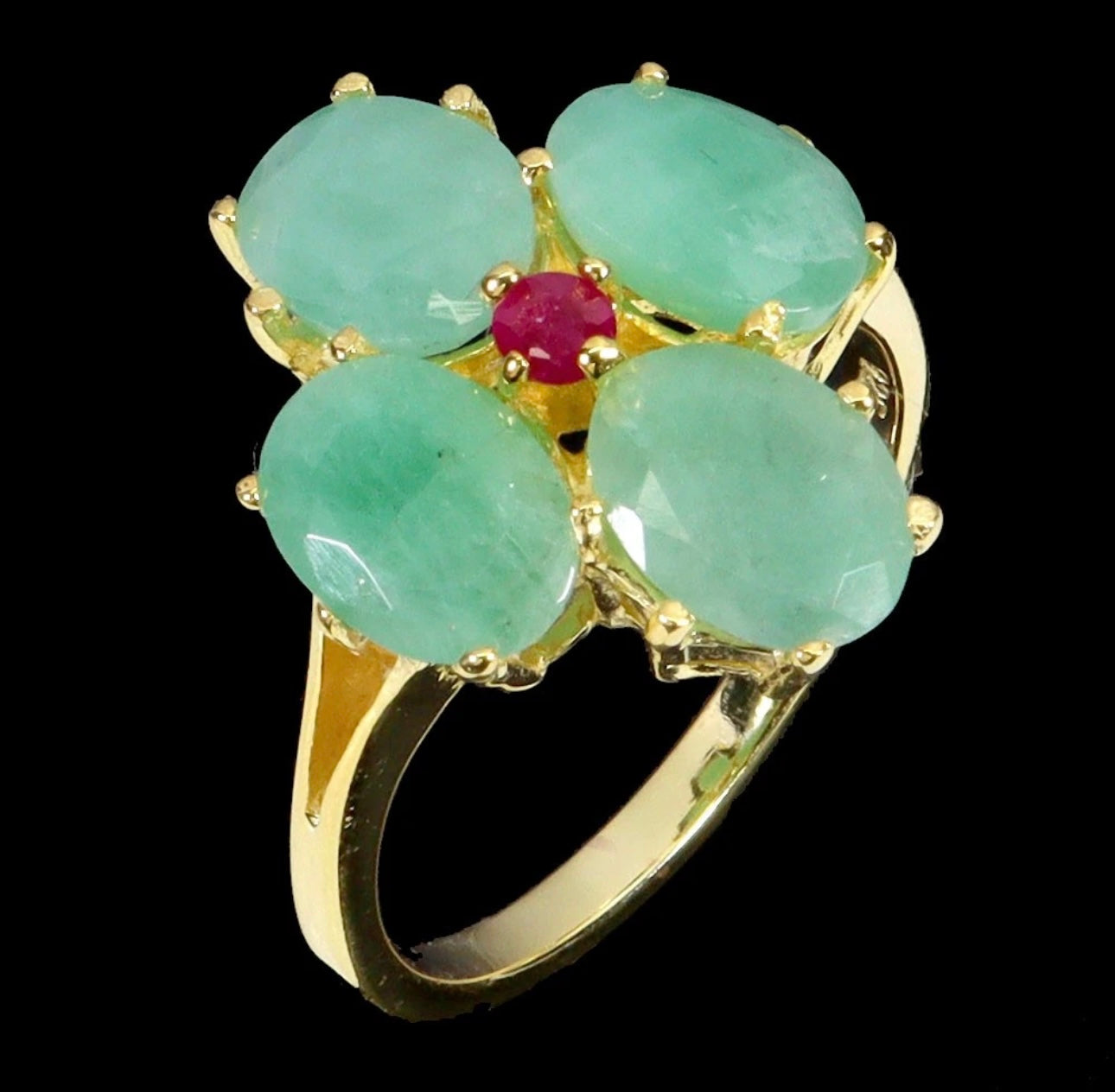 Anillo Flor Esmeralda y Rubí