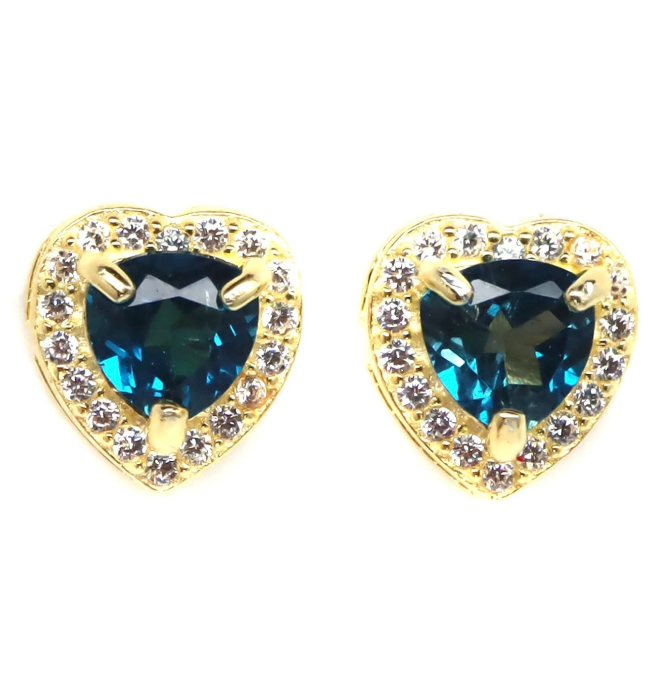 Aros Corazón Topacio London Blue y Topacio Blanco